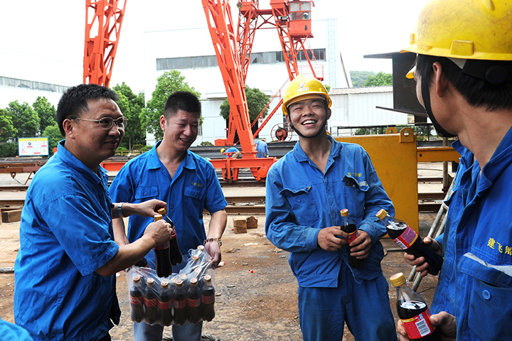 8月的舟山氣溫依舊持續(xù)攀高,生產(chǎn)現(xiàn)場作業(yè)溫度高達40-50攝氏度。為保證生產(chǎn)工作的有序推進,保障廣大生產(chǎn)一線員工的安全,集團黨委副書記、工會主席鄒元龍帶領(lǐng)工作人員,于8月14日、8月15日、8月16日三天,分別前往東海岸公司、通用公司、舟山船廠及大神洲公司生產(chǎn)現(xiàn)場,發(fā)放飲料、棒冰慰問一線員工,在炎炎夏日為他們送去了一絲清涼。此外,自七月起,各子公司分工會也多次自行組織送清涼等活動,積極開展防暑降溫工作。