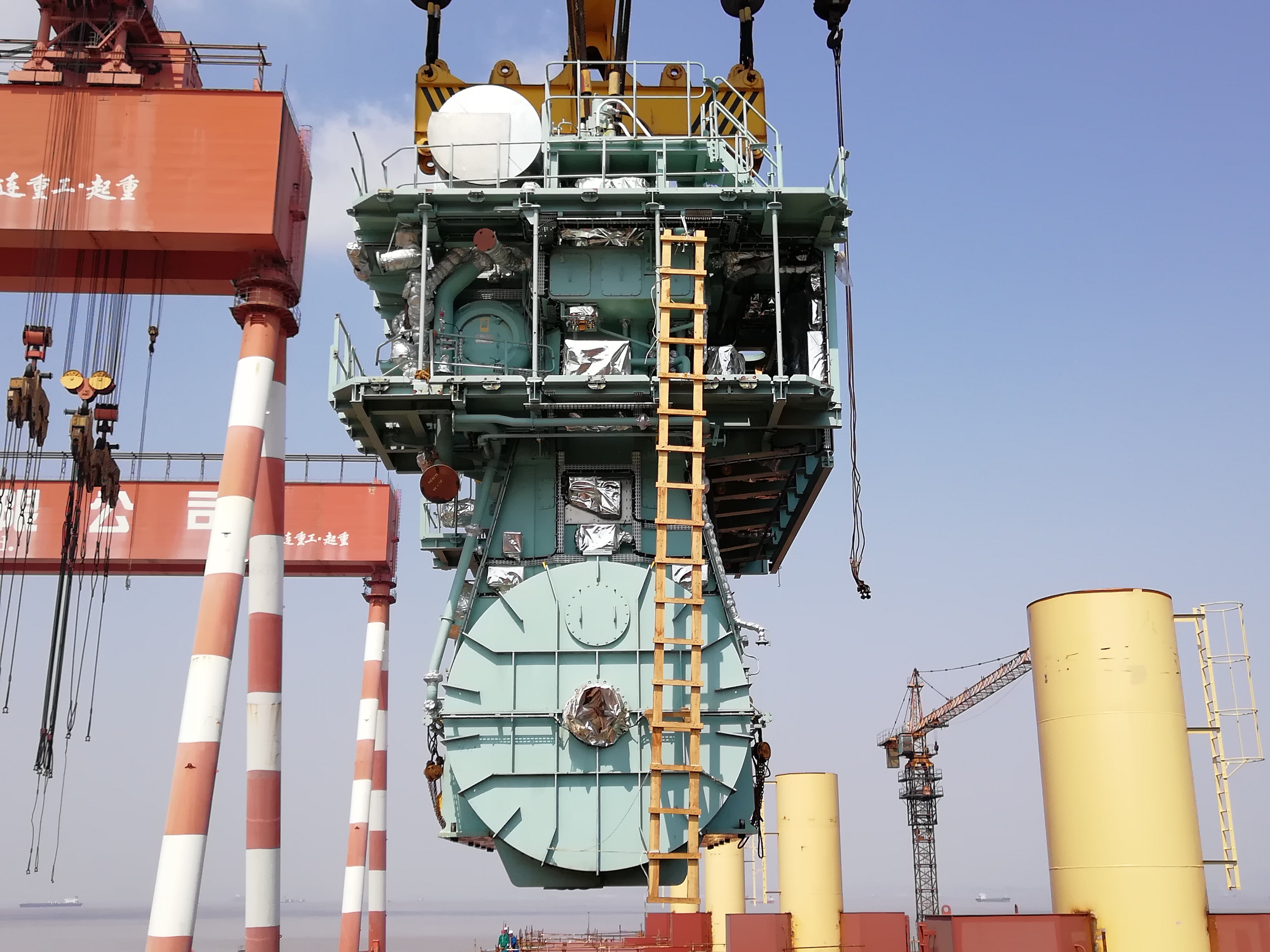 進(jìn)入3月中旬,趁著難得的大好天氣,東海岸公司積極組織,在一周內(nèi)完成兩次主機(jī)吊裝的重要節(jié)點(diǎn),為塢內(nèi)周期搶抓時(shí)間節(jié)點(diǎn)。
