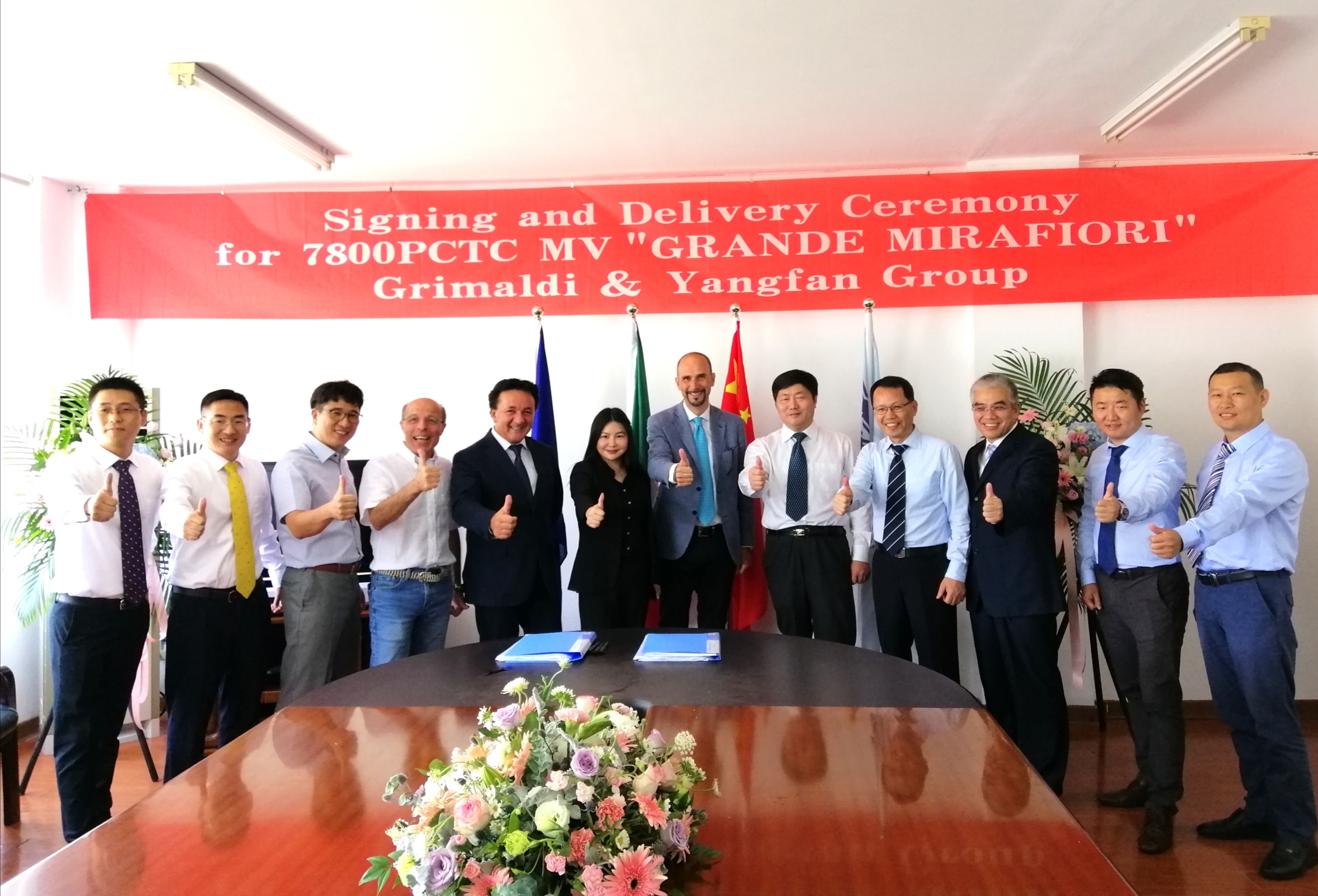 揚(yáng)帆集團(tuán)一艘7800車系列汽車滾裝船正式簽字交付