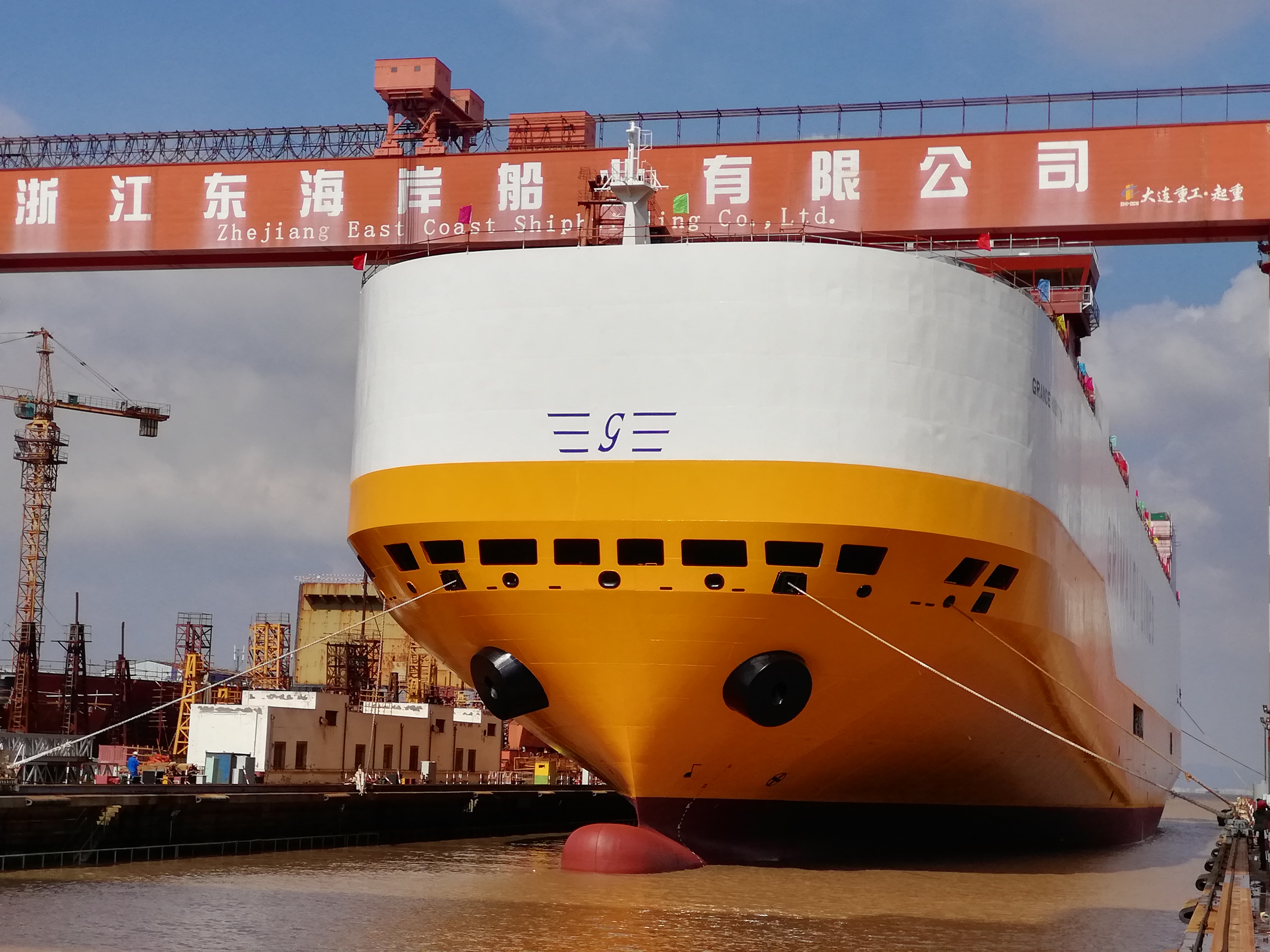 2019年10月19日上午,揚(yáng)帆集團(tuán)下屬浙江東海岸船業(yè)有限公司一艘7800PCTC系列汽車滾裝船順利下水,出塢狀態(tài)完整性超越已交付的兩艘系列船。