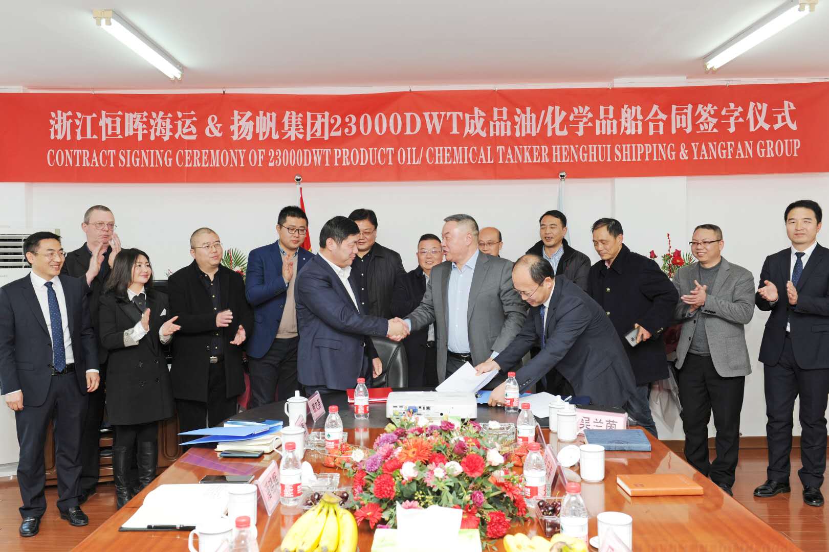 2020年1月1日,揚帆集團(tuán)與國內(nèi)一船東簽署了一艘23,000噸級成品油兼化學(xué)品船建造合同。該船型總長159.20米,型寬24.80米,型深13.85米,結(jié)構(gòu)吃水9.80米,最大23,000載重噸,液貨艙艙容達(dá)27,000立方米。該船可裝載輕汽油、柴油、2類化學(xué)品等貨品。該項目的簽署為揚帆2020年的市場開拓注入了信心。