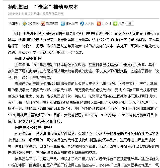 中國船舶在線:揚帆集團與重鋼簽訂2013年合作協(xié)