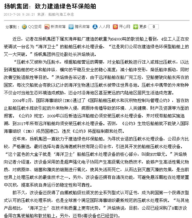 船舶與海工:揚(yáng)帆集團(tuán):致力建造綠色環(huán)保船舶
