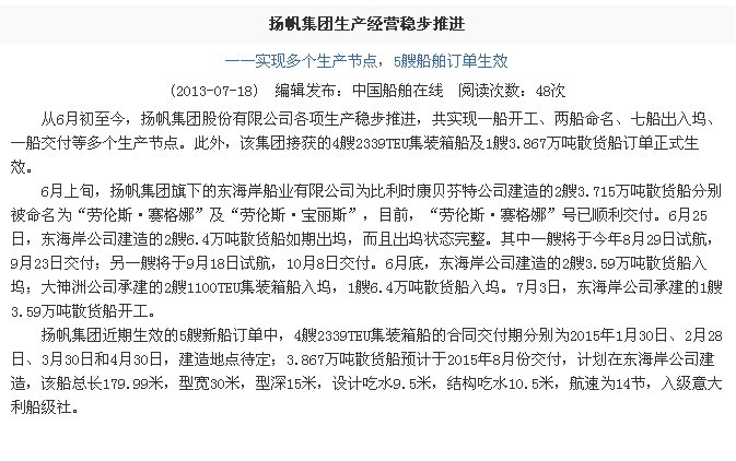 中國船舶在線:揚帆集團(tuán)生產(chǎn)經(jīng)營穩(wěn)步推進(jìn)
